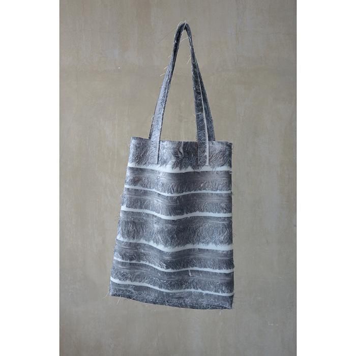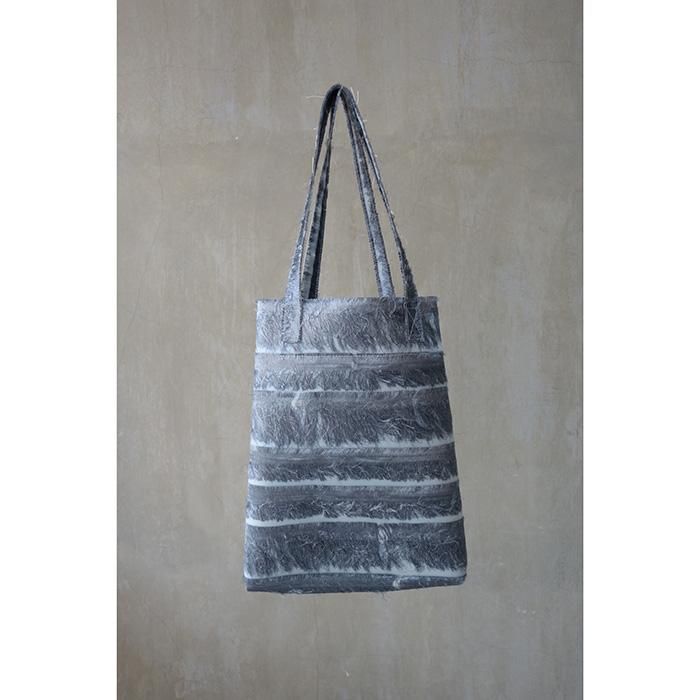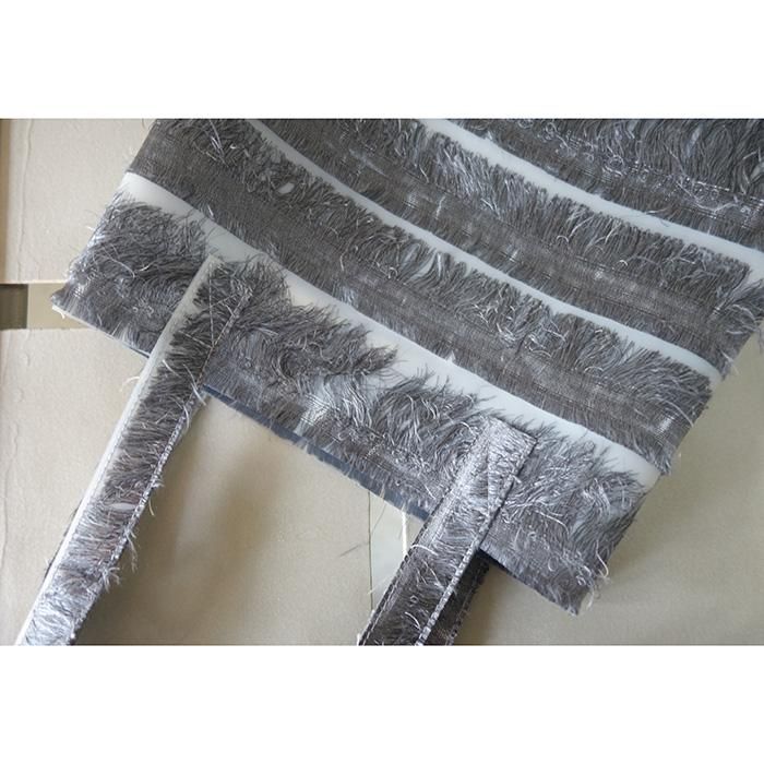 ダークグレー色のシルクフリンジが横縞にコラージュされています。