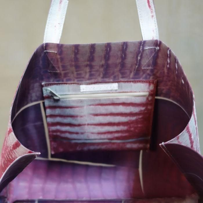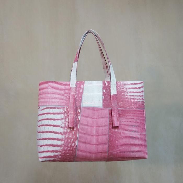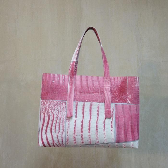 エルメス社にてバッグをつくる際にでる革のスクラップをコラージュしポリウレタン樹脂で特殊なコーティングがされています。